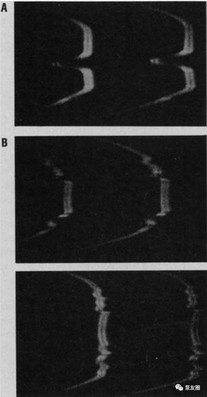 迄今為止,此類實驗無法確定空蝕發(fā)生時氣泡的形成—發(fā)育—破裂周期的確切階段 (6)??张萆L和破裂的整個過程通常發(fā)生得非常迅速(10-6, 到10-3 s),并且所有有趣的特征都具有亞微觀尺寸。由于這些原因,很難研究空泡的快速增長和破裂,尤其是這些過程與(彈性流體動力學)表面變形以及最終空蝕之間的關(guān)系。然而,通常認為空蝕只發(fā)生在空泡破裂(消亡)期間(4-7)。